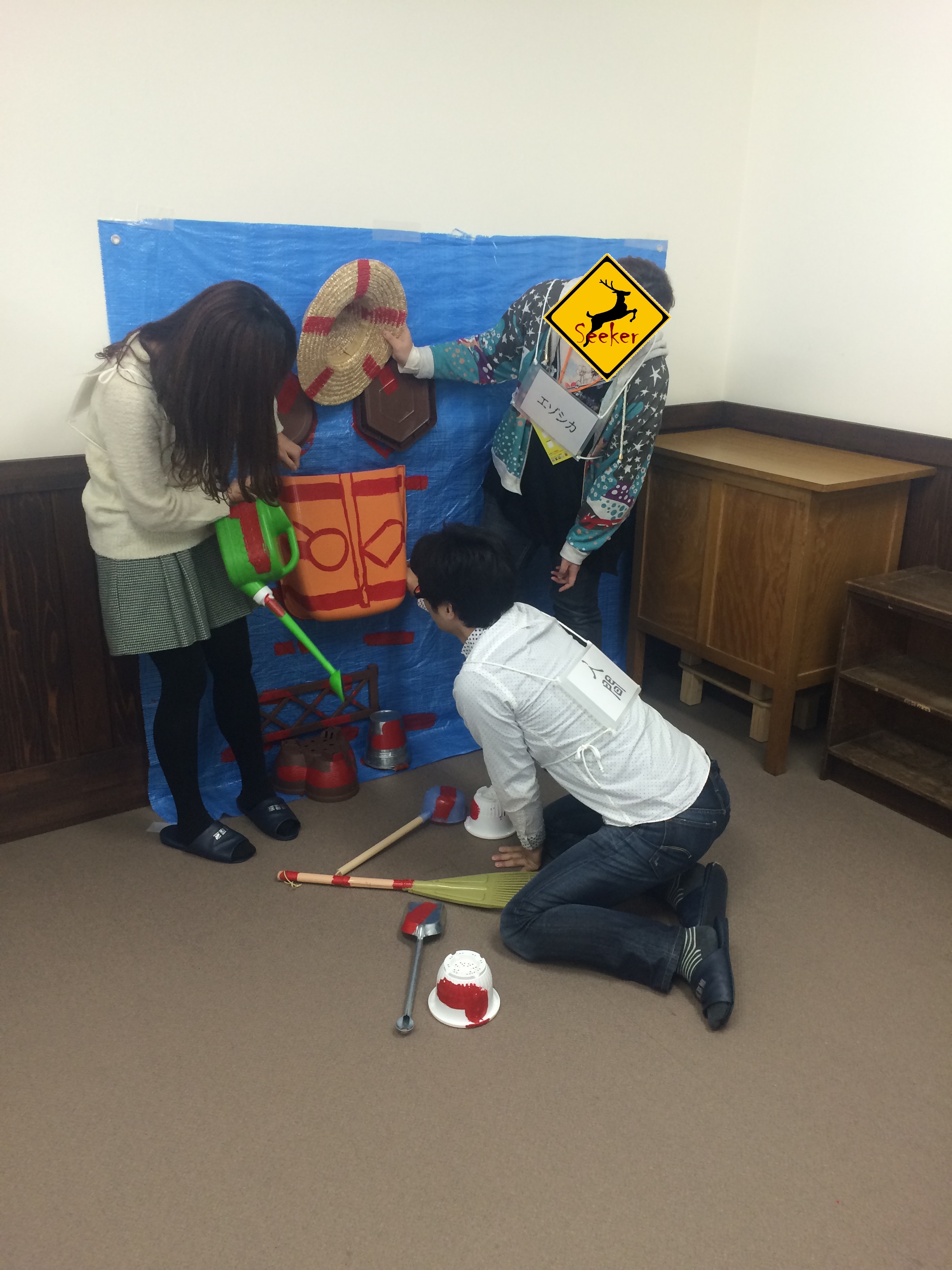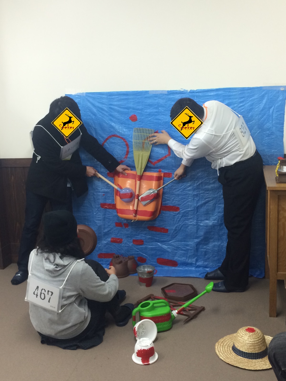 そのため辺りには赤いペンキで汚された園芸用品が散らばっております。