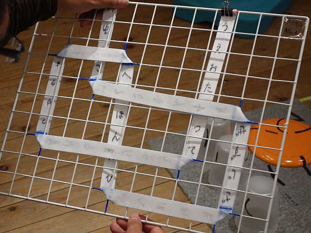 格子には色が付いており、文字と色がついたテープがあります。