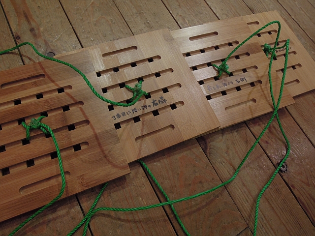ひもがくくりつけられた板が4枚あります。