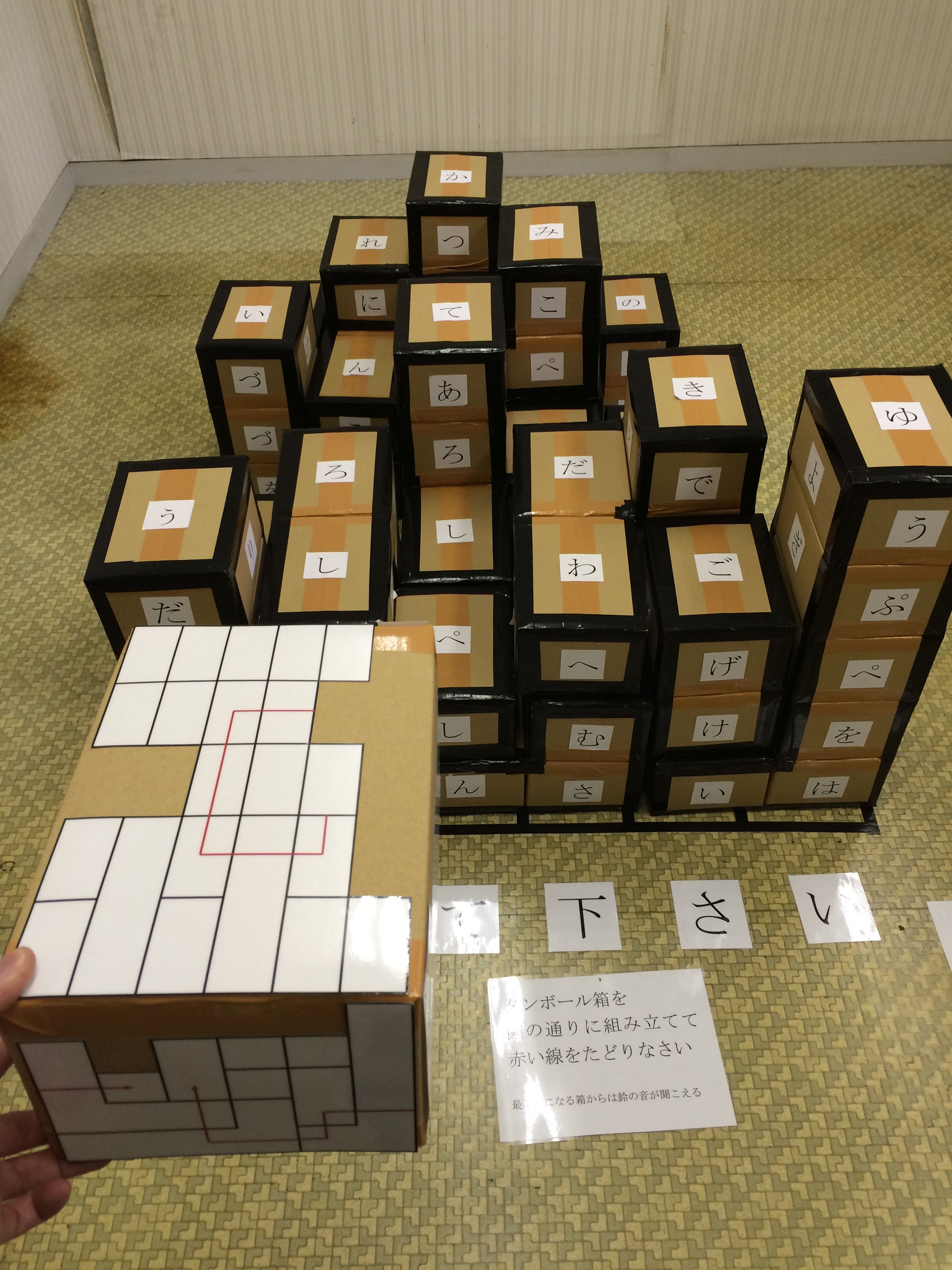 ここまでの各チームの解答から、床にかかれた枠に当てはめると、 「くすりだな」の「かみさま」にドアを「ごかい」「KNOCK」し『「ざいこせいり」させてください。』となります。