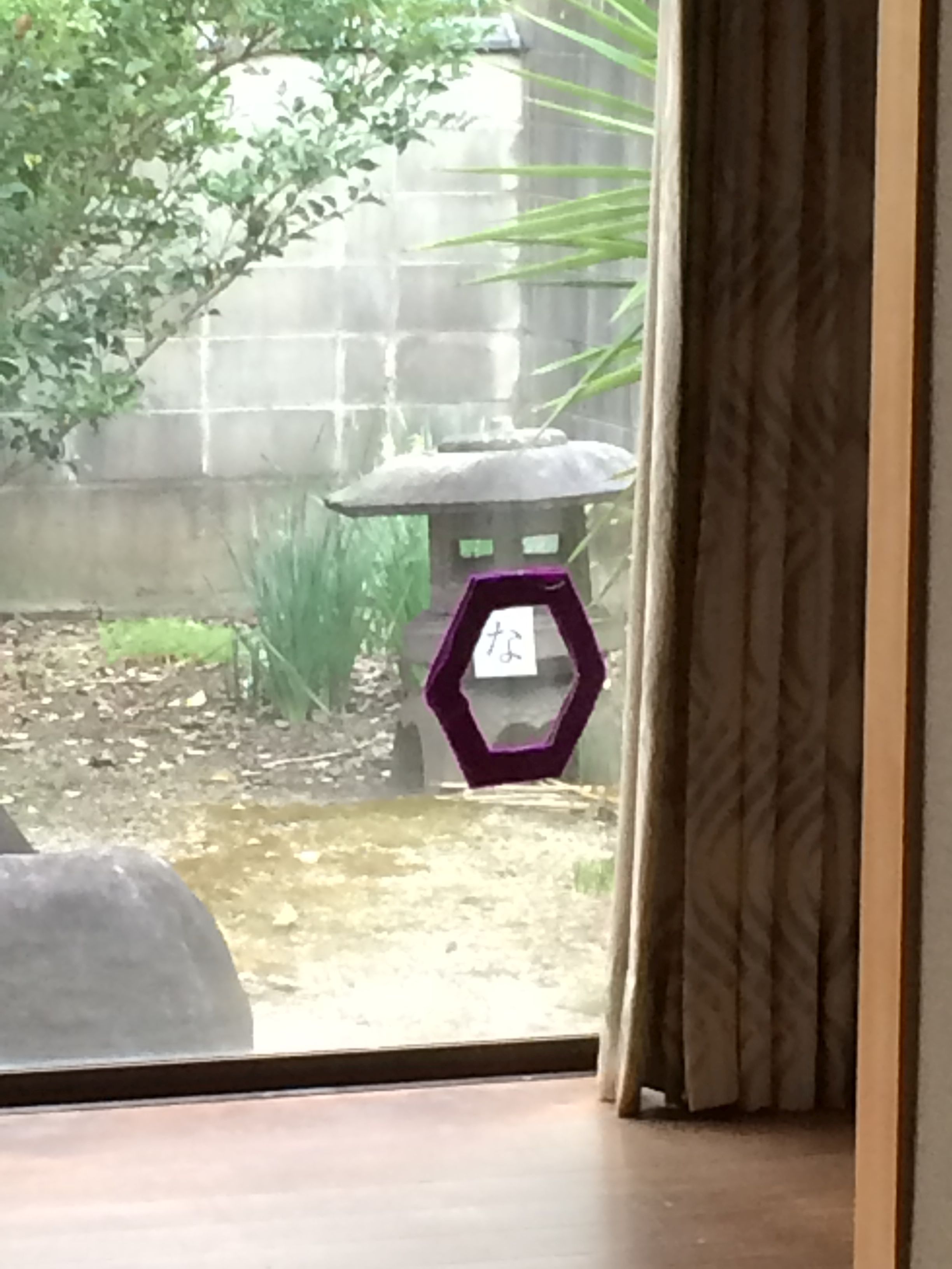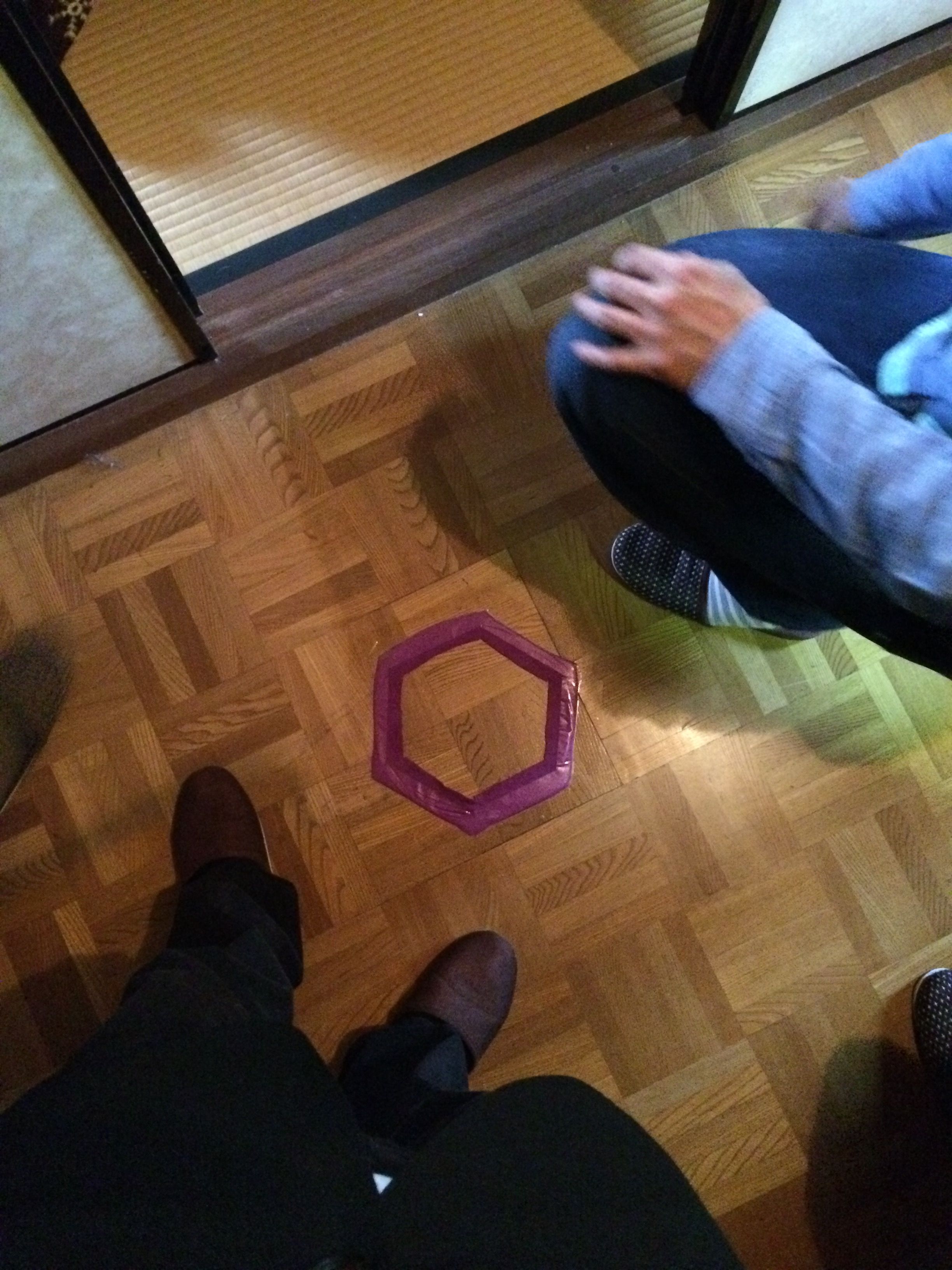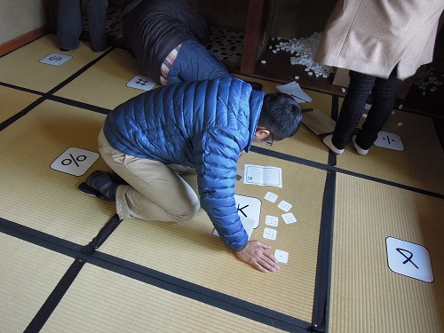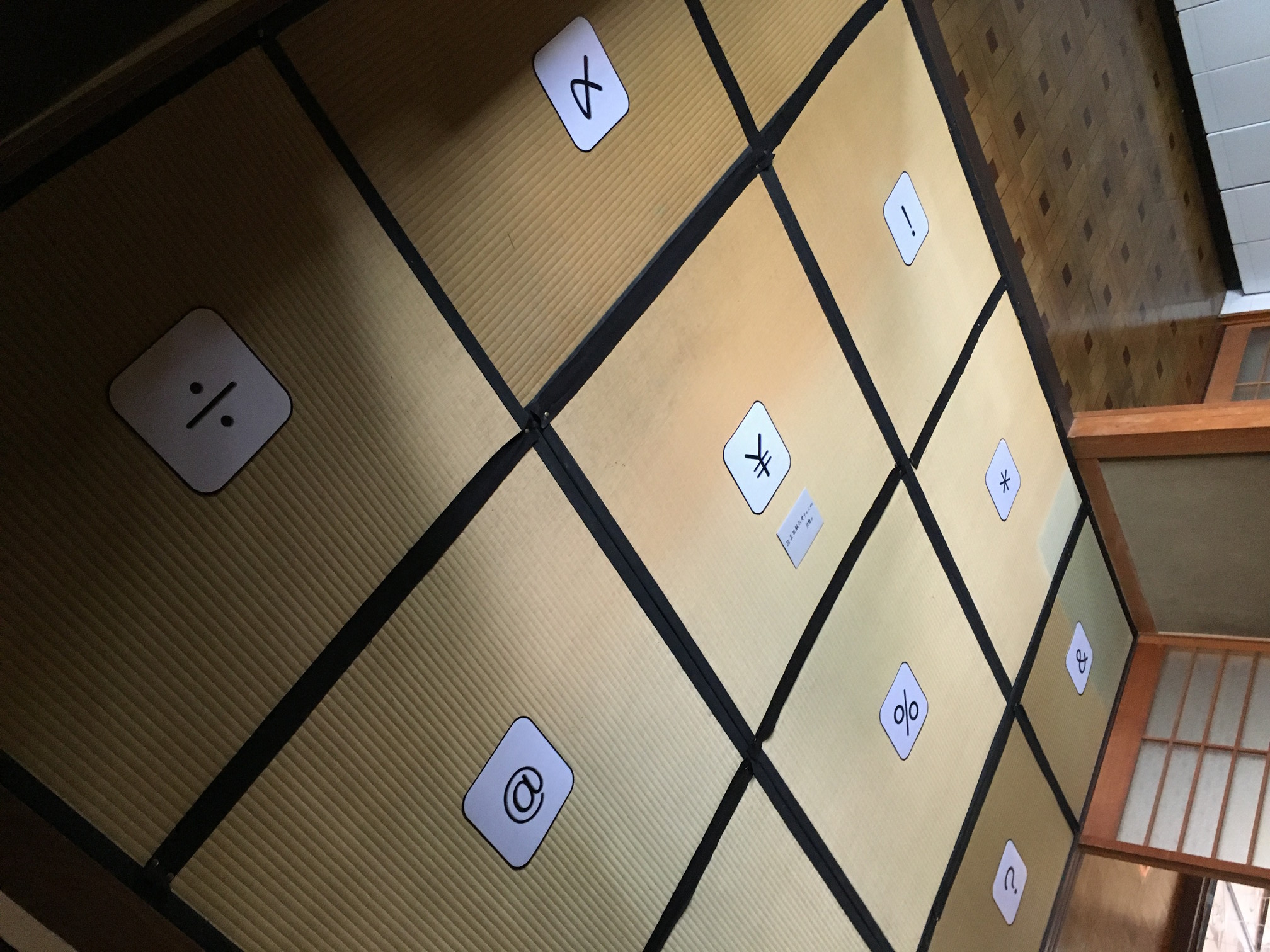 和室の畳は3×4に区切られ、12個の記号が貼られていました。