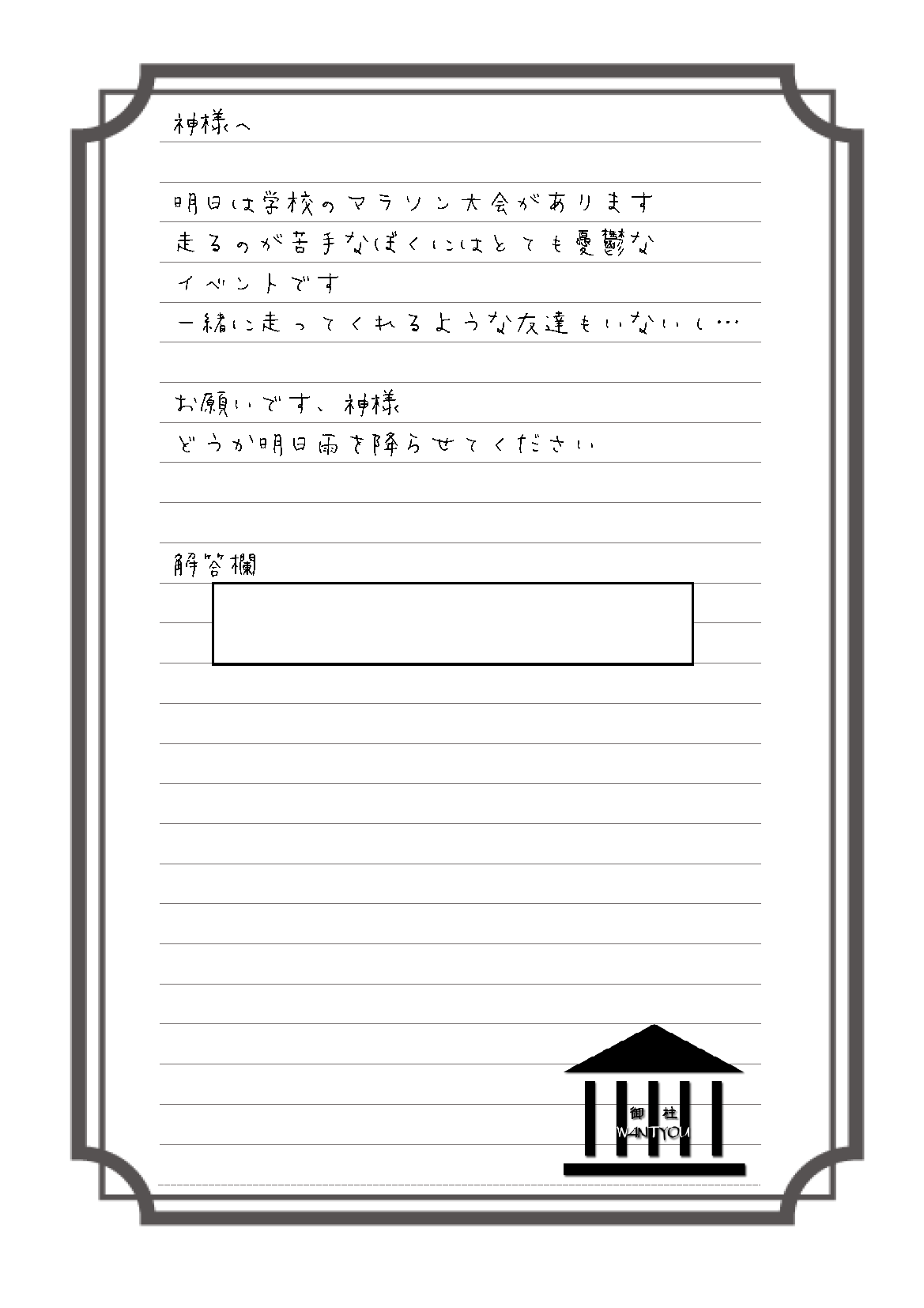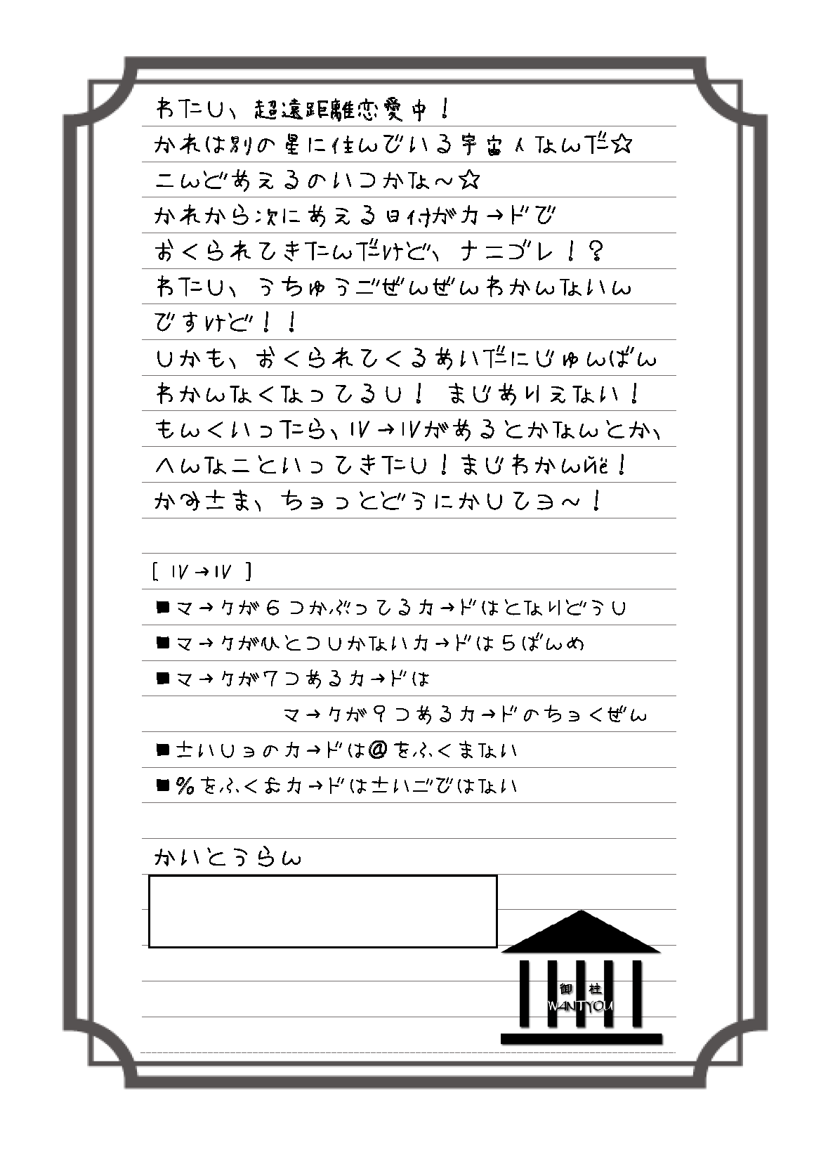 切り取り線に従って切り取ると裏側に右のような文字が書かれていました。