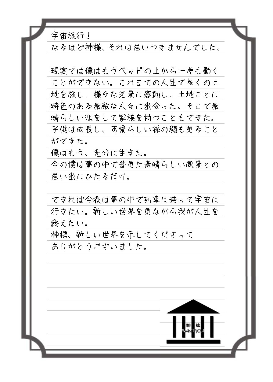 この順番に旗の文字を並べ替えると「うちゅうりょこう」となります。