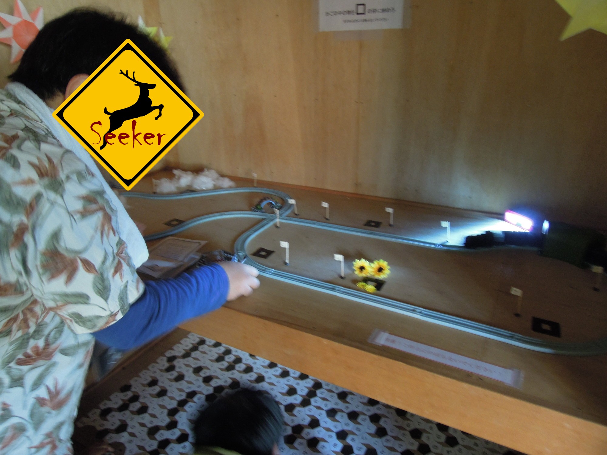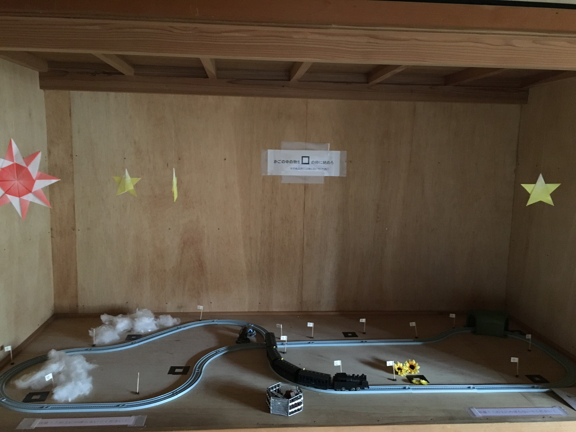 上には星や太陽、地上には橋やトンネルや花畑や綿(雪)などが配置されていました。