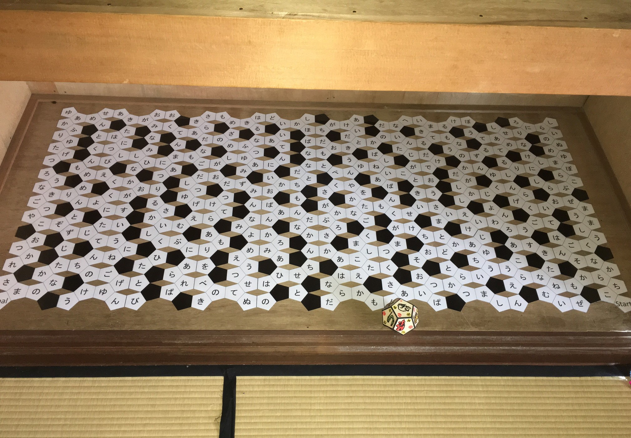 干支が描かれた12面体を転がしてスタートからゴールまで進む迷路です。