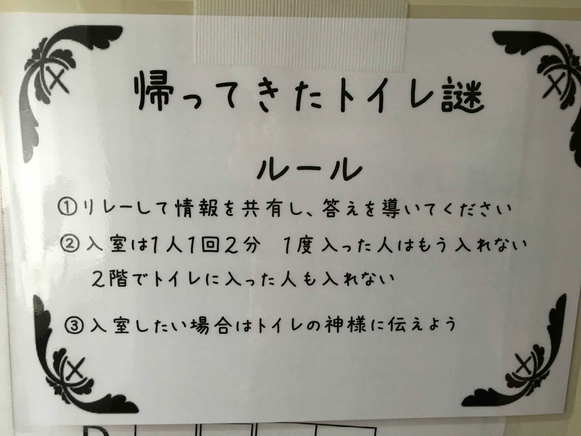トイレの扉には解答欄が貼られています。A~Dの問題を解くことで答えがわかります。