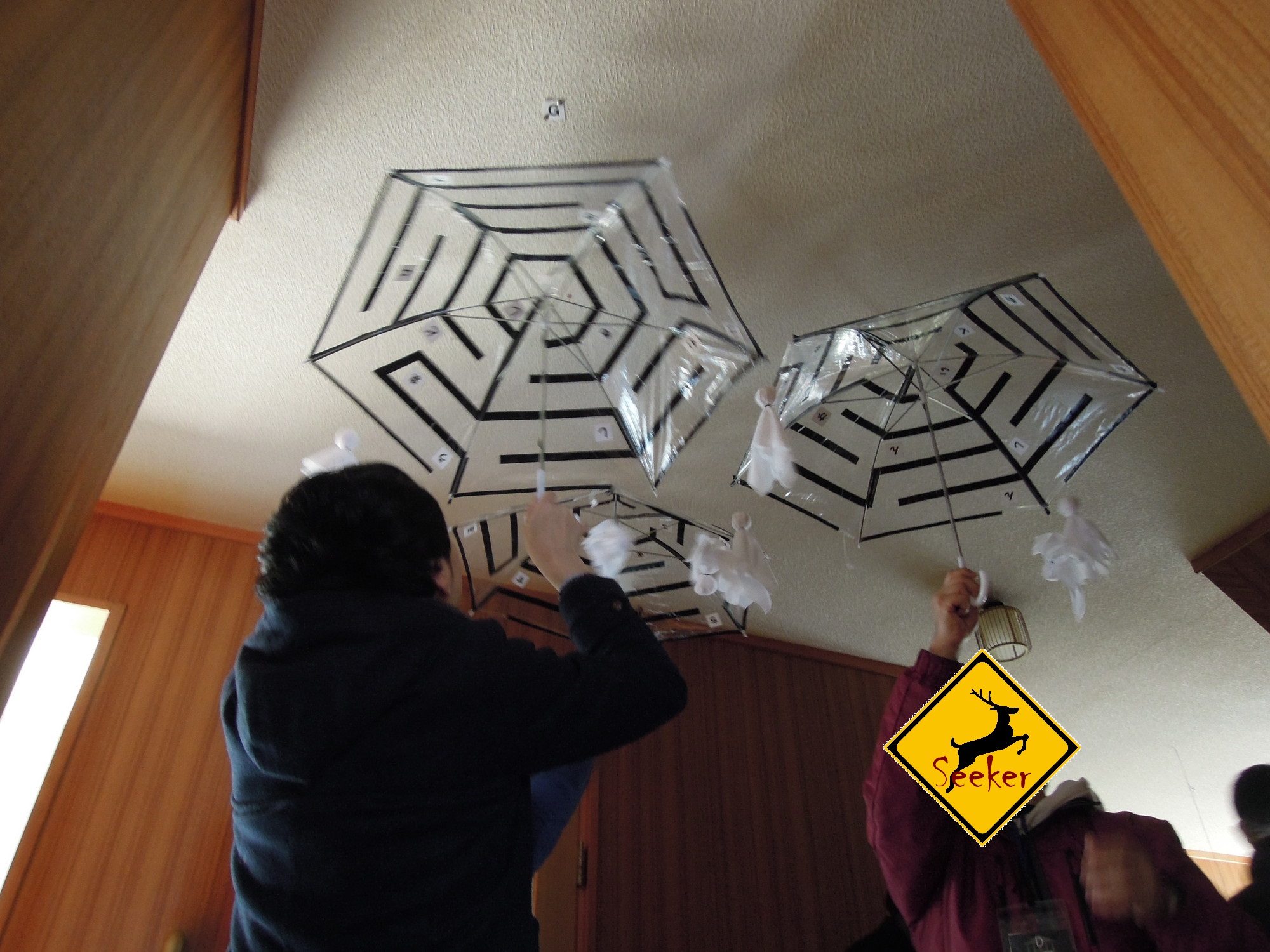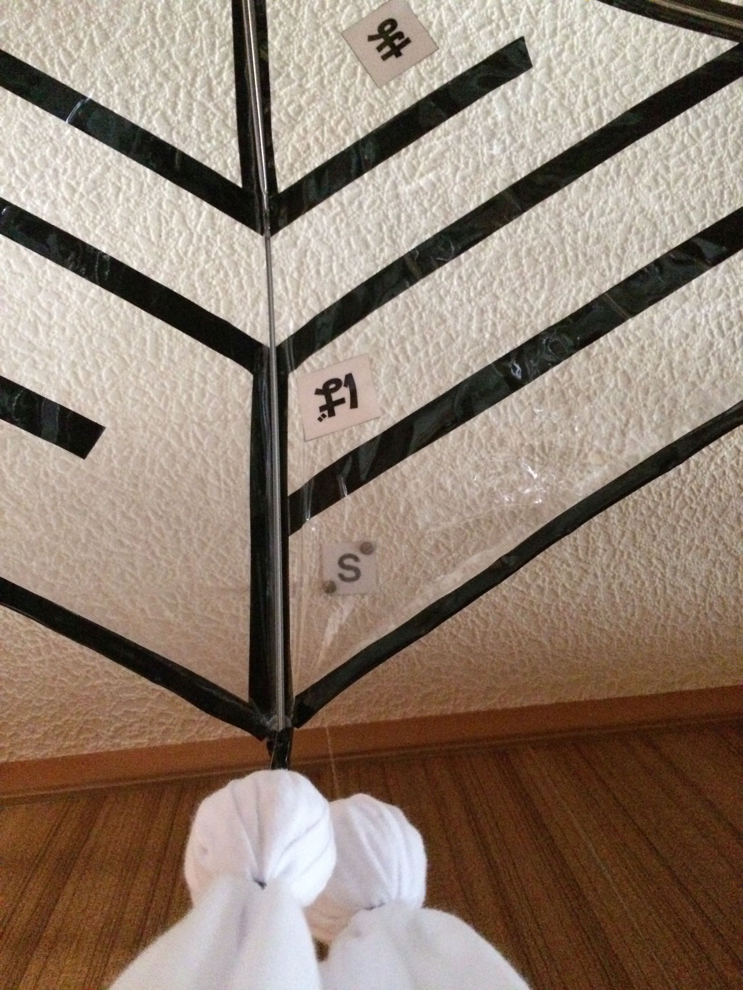 傘と天井のてるてる坊主を同じ向き同士でくっつけましょう。
