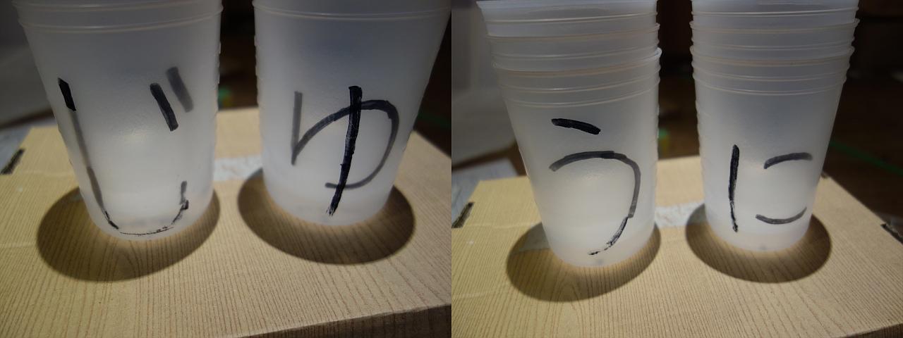 透明なカップがいくつか転がっています。
