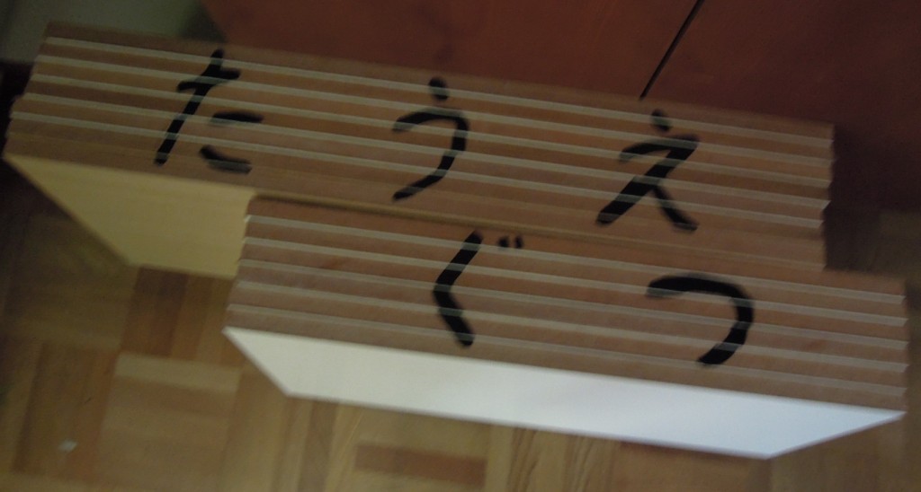 台所の引き出しの中には吸盤の付いたひらがなが隠されていました。 そして壁のタイルには枠が書かれています。